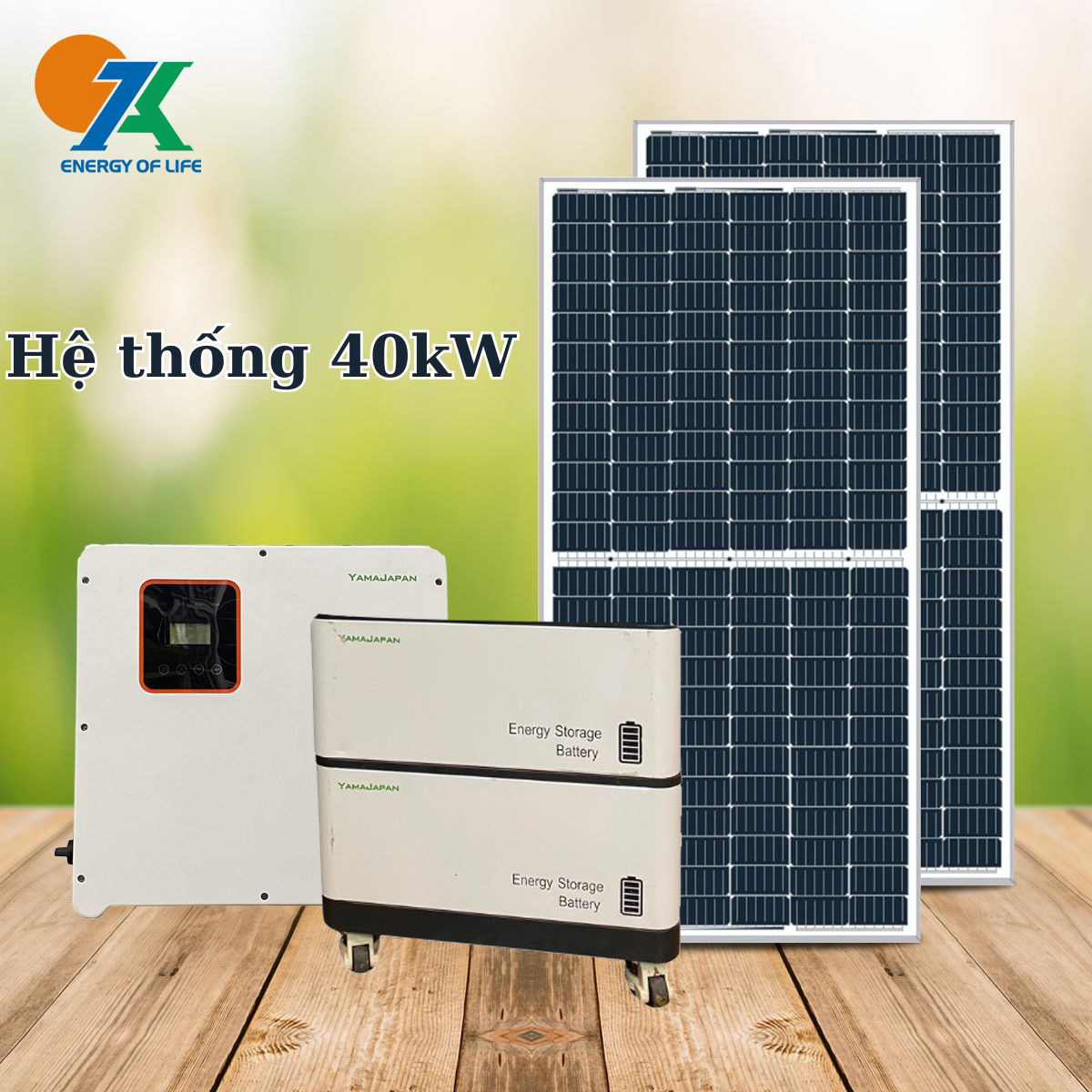 – điện năng lượng mặt trời 40kW Lấy nguyên lý biến đổi quang năng thành điện năng làm cơ sở, sử dụng nguồn năng lượng thân thiện với môi trường, an toàn khi sử dụng.