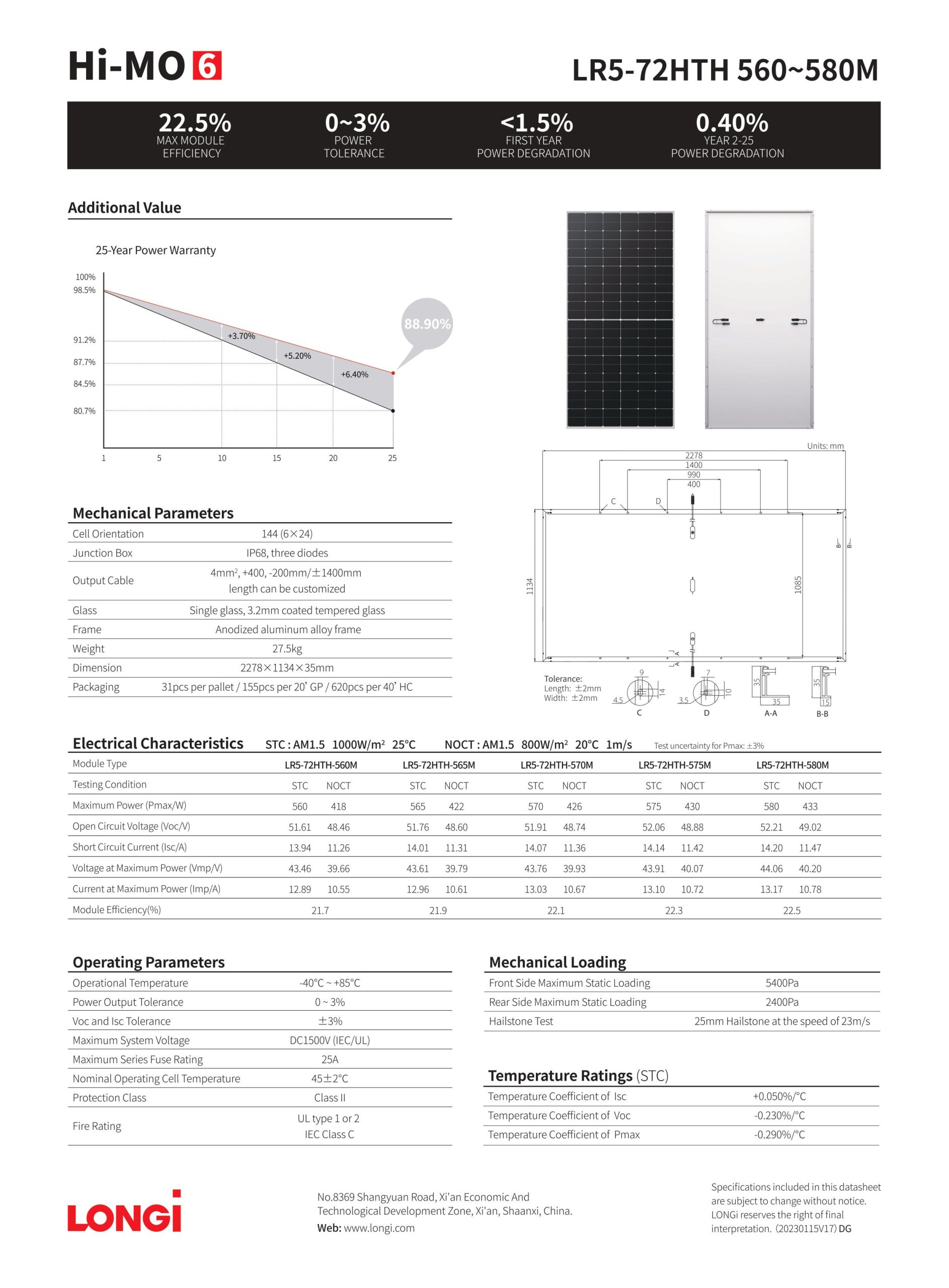 LONGi Hi-MO6 Explorer LR5-72HTH 560 ~ 580 Wp