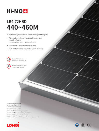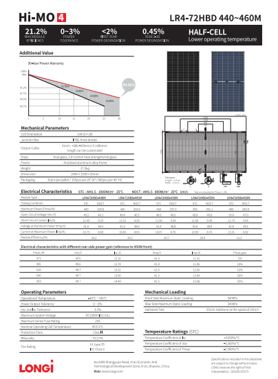 Tấm pin LONGi 445Wp 2 mặt kính (Bifacial) kết hợp các tế bào Mono PERC hiệu suất cao, LID thấp, công nghệ Muti – Busbar (9 BusBar) mang lại những tính năng ưu việt: